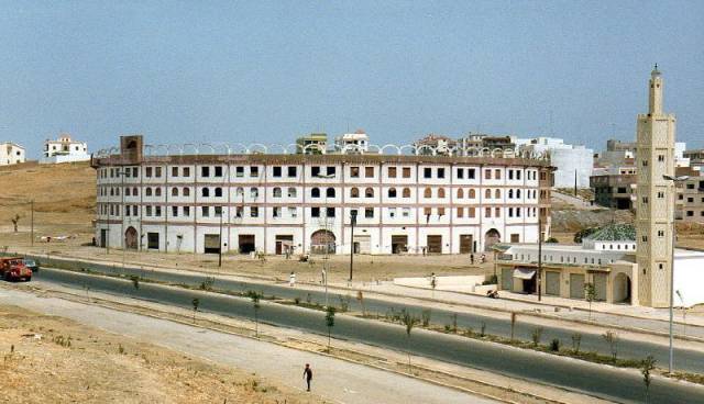 Les arènes de Tanger et le quartier M'rabet Ben Slimane au fond à droite en 1950