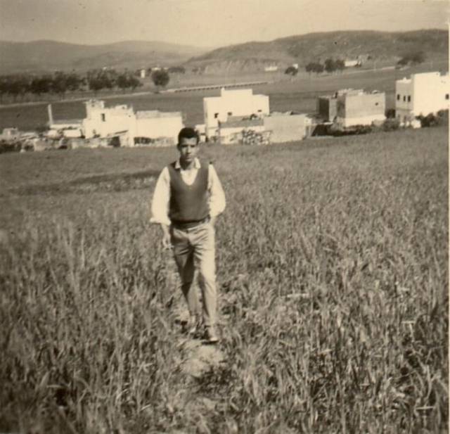 Un jeune du quartier dans une promenade dans le blé et Haoumat M'rabet vu de la coline (El borge) en 1963